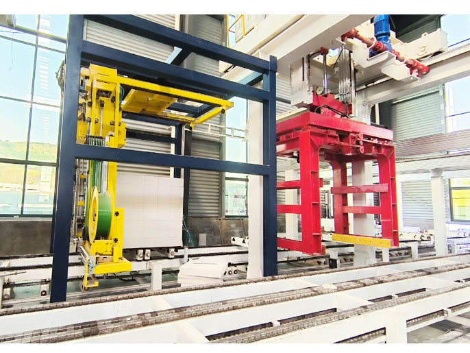 產(chǎn)品分揀和包裝工段:掰扳機、成品夾具、砌塊/板材輸送線等。完成蒸養(yǎng)出釜的坯體經(jīng)掰分后由包裝輸送設備進行分揀、碼垛、打包并運送至堆場。
